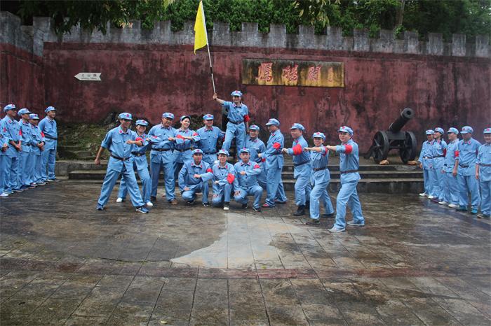 經(jīng)過一路爬涉,我們終于到達(dá)了紅七軍廣場(chǎng)。廣場(chǎng)足有兩個(gè)球場(chǎng)寬大,廣場(chǎng)的背景是一幅紅七軍的巨型浮雕,“鷹揚(yáng)關(guān)”三個(gè)大字蒼勁有力赫然其中,兩門古炮架設(shè)兩旁蔚為壯觀。據(jù)教官介紹,這里就是湘、桂、粵三省交界處,號(hào)稱“一腳踏三省”的地方。遙想當(dāng)年,紅七軍就是在這里集結(jié)從廣西進(jìn)入廣東連山。