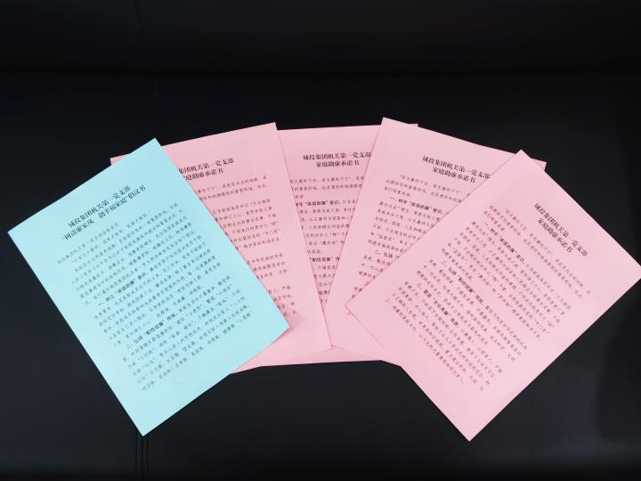 會上,發放了《城投集團機關第一黨支部“樹清廉家風創幸福家庭”倡議書》,全體黨員集體簽訂了《家庭助廉承諾書》,把廉潔教育延伸到干部職工的家庭中和“八小時”之外,倡導黨員干部守好“廉潔門”、當好“廉管家”,常吹家庭廉潔風。