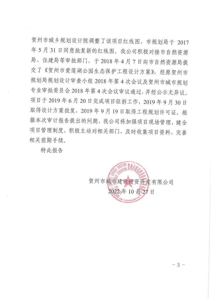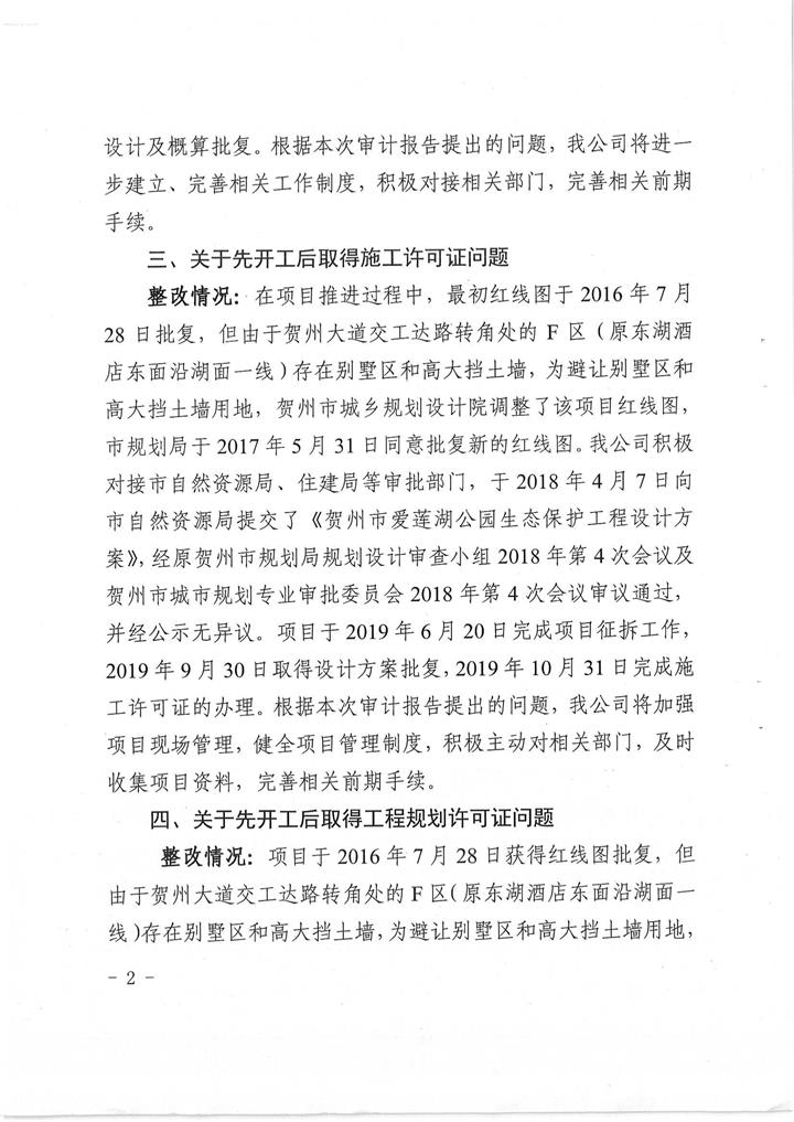 城投公司關于賀州市愛蓮湖生態保護及基礎設施PPP項目結算審計整改情況的報告