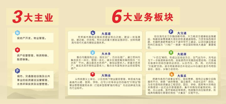 城投集團立足戰(zhàn)略布局,持續(xù)優(yōu)化布局結(jié)構(gòu),主責(zé)主業(yè)更加突出。2021年,根據(jù)市委部署要求,城投集團與原交投集團進(jìn)行重組合并。合并后的城投集團定位為以承擔(dān)基礎(chǔ)設(shè)施投資建設(shè)、提供公共服務(wù)和產(chǎn)品、土地開發(fā)經(jīng)營利用為三大核心功能的經(jīng)營實體。根據(jù)三大核心功能定位,城投集團研究確定了“三大主業(yè)六大板塊”的發(fā)展思路,提出“大基建、大交通、大水務(wù)、大能源、大物業(yè)、大集采”等六大轉(zhuǎn)型發(fā)展新板塊,同步推進(jìn)建筑材料貿(mào)易、賀州智慧停車、金融押運、小額貸款、特許經(jīng)營等輔助業(yè)務(wù),支撐核心業(yè)務(wù)發(fā)展,做大現(xiàn)金流、做強企業(yè)實力、做優(yōu)企業(yè)資產(chǎn)。