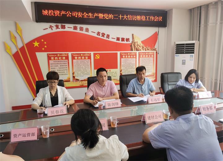 9月30日,城投資產(chǎn)公司召開安全生產(chǎn)暨黨的二十大信訪維穩(wěn)工作會議。會議要求,黨的二十大召開在即,維護(hù)社會大局和諧穩(wěn)定意義重大,公司上下要提高政治站位,對標(biāo)工作要求壓實工作責(zé)任,定期開展安全隱患排查,堅決防范安全生產(chǎn)事故,牢守不發(fā)生影響社會穩(wěn)定事件的底線。