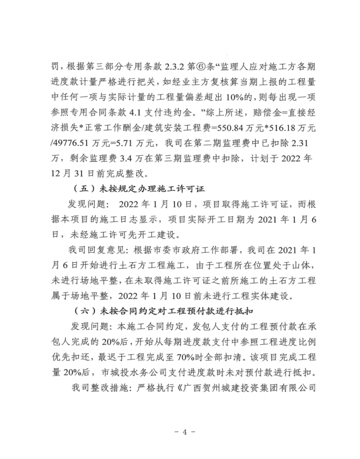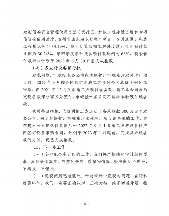 上一篇:關于賀州市城投公司辦公樓附屬裝修工程結算審計發現問題整改情況的報告