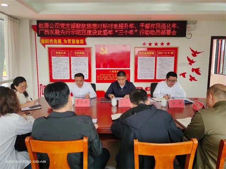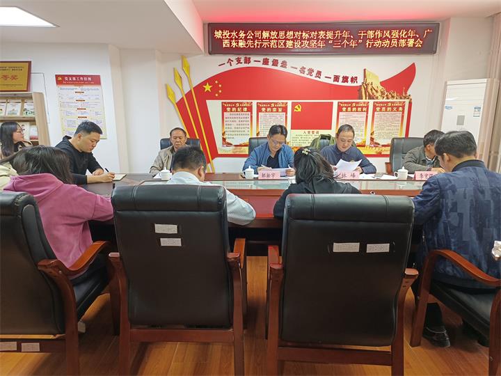 為深入貫徹市委決策部署,3月9日,城投集團召開解放思想對標對表提升年、干部作風強化年、廣西東融先行示范區建設攻堅年“三個年”行動動員部署會精神。3月23日,集團黨委召開擴大會議,傳達學習全國“兩會”精神,并對集團開展“三個年”行動進行再部署,對查擺問題再剖析,確保取得實效。集團召開“三個年”行動動員部署會后,各子公司相繼召開會議,切實將開展“三個年”行動與學習貫徹“兩會”精神結合起來,與貫徹自治區黨委重實效、強實干、抓落實要求結合起來,與市委“實干干實、快干干好”工作理念結合起來,促進各項工作任務高質高效完成。