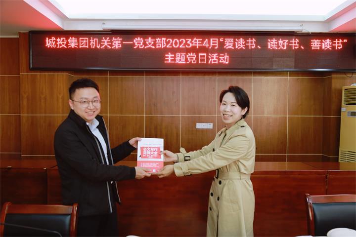 為深化學習型黨支部建設,引導廣大黨員干部養成多讀書,讀好書,好讀書的良好習慣,4月25日,城投集團機關第一黨支部開展2023年4月“愛讀書、讀好書、善讀書”主題黨日活動,支部書記湯彩燕主持活動并講話。支部黨員、入黨發展對象、入黨申請人參加活動。