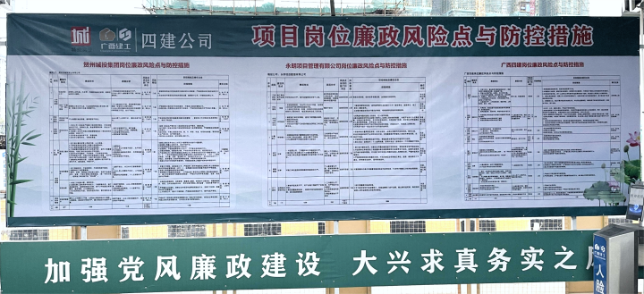按照賀州“清廉國企”建設工作部署,賀州城投實業公司以嚴格把控項目“質量、進度、投資、安全、廉潔”為目標,構建黨建領廉、制度強廉、文化育廉、項目立廉“四位一體”的“清廉項目”建設模式,把廉潔理念融入項目建設各方面、全過程,確保了項目優質、高效、安全有序推進。