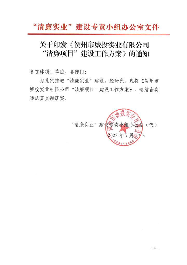 賀州城投集團實業公司“清廉實業”建設專責小組辦公室