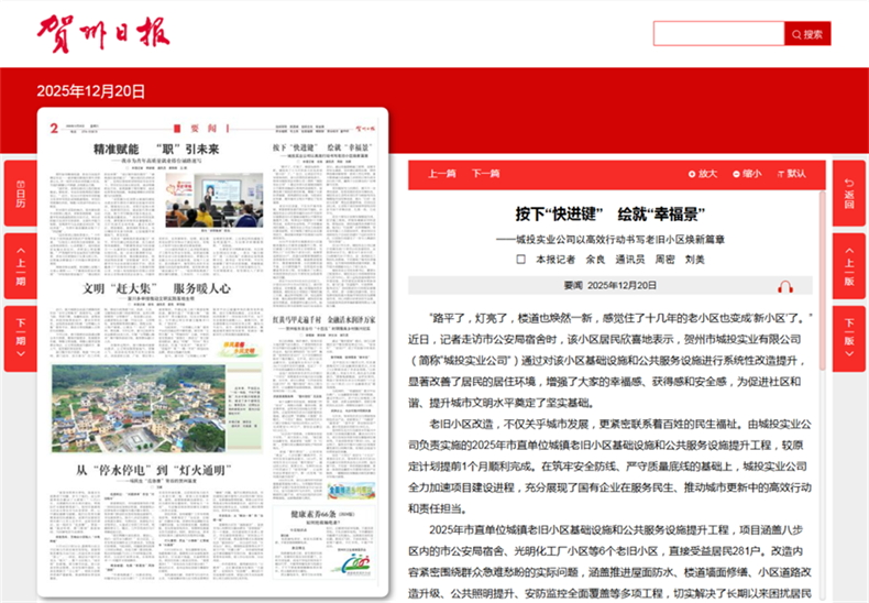 自2021年以來,城投實業公司已累計實施完成7個老舊小區改造項目,總投資9000萬元,惠及78個老舊小區、234棟樓共347個單元。這一系列民生工程的扎實落地,不僅擦亮了城市的幸福底色,也為賀州持續推進城市更新、提升綜合承載能力注入了持久動力。