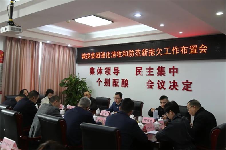 12月31日下午,城投集團召開強化清收和防范新拖欠工作布置會,黨委副書記、總經理常瑜主持會議并作部署...